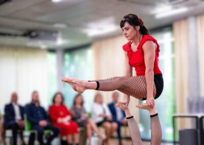 Baví mě také spolupráce s dalšími umělci – od roku 2023 tvořím Duo K+Z Aerialists se Zuzkou Tachezy a Duo K s Katie Weisserovou. Společně vystupujeme na akcích i festivalech, jako je například Cirkulum. Každé vystoupení je pro mě příležitostí vtáhnout diváky do světa, kde se pohyb stává příběhem.