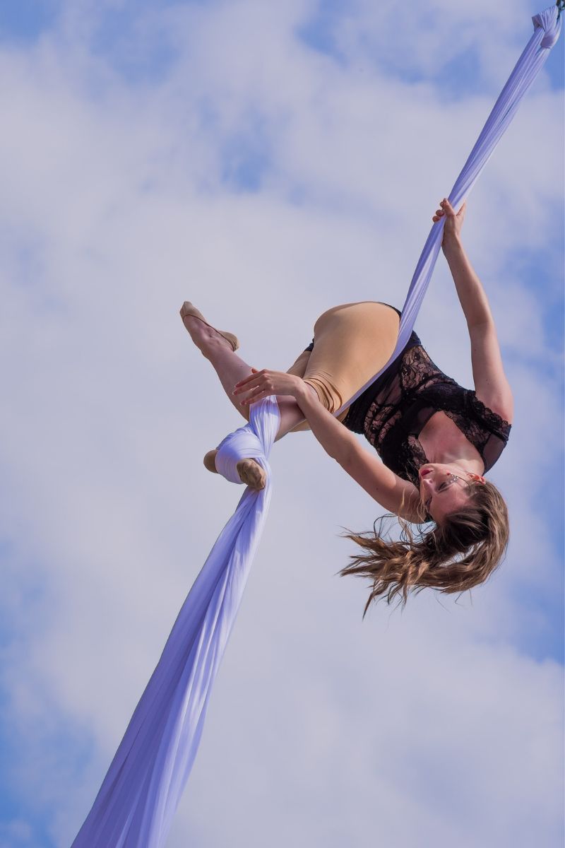 Vzdušná akrobacie, která spojuje eleganci baletu a sílu gymnastiky několik metrů nad zemí.